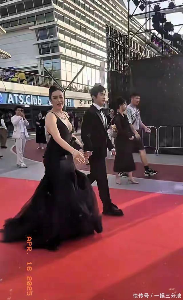 这几天钟丽缇去三亚参加了个活动,穿了件紧身水晶吊带裙上红毯。照片一出网上炸锅了,大家看见她的肩膀变宽腰变粗,说她年纪大了还穿这么露没必要,还说她胖到了180斤。同一套行程里她老公张伦硕也穿了双特别厚的增高鞋,鞋底厚得像踩砖头似的,可评论区骂他的人比她少多了,倒是很多人说男人发福正常。